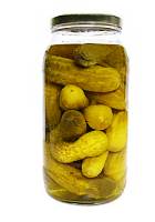 Til saltlagen røres vand, salt og eddike sammen, og den kolde lage hældes over agurker og peberfrugt. Et pres lægges på, og de stilles tildækket et døgn. Tages op og løber godt af. |